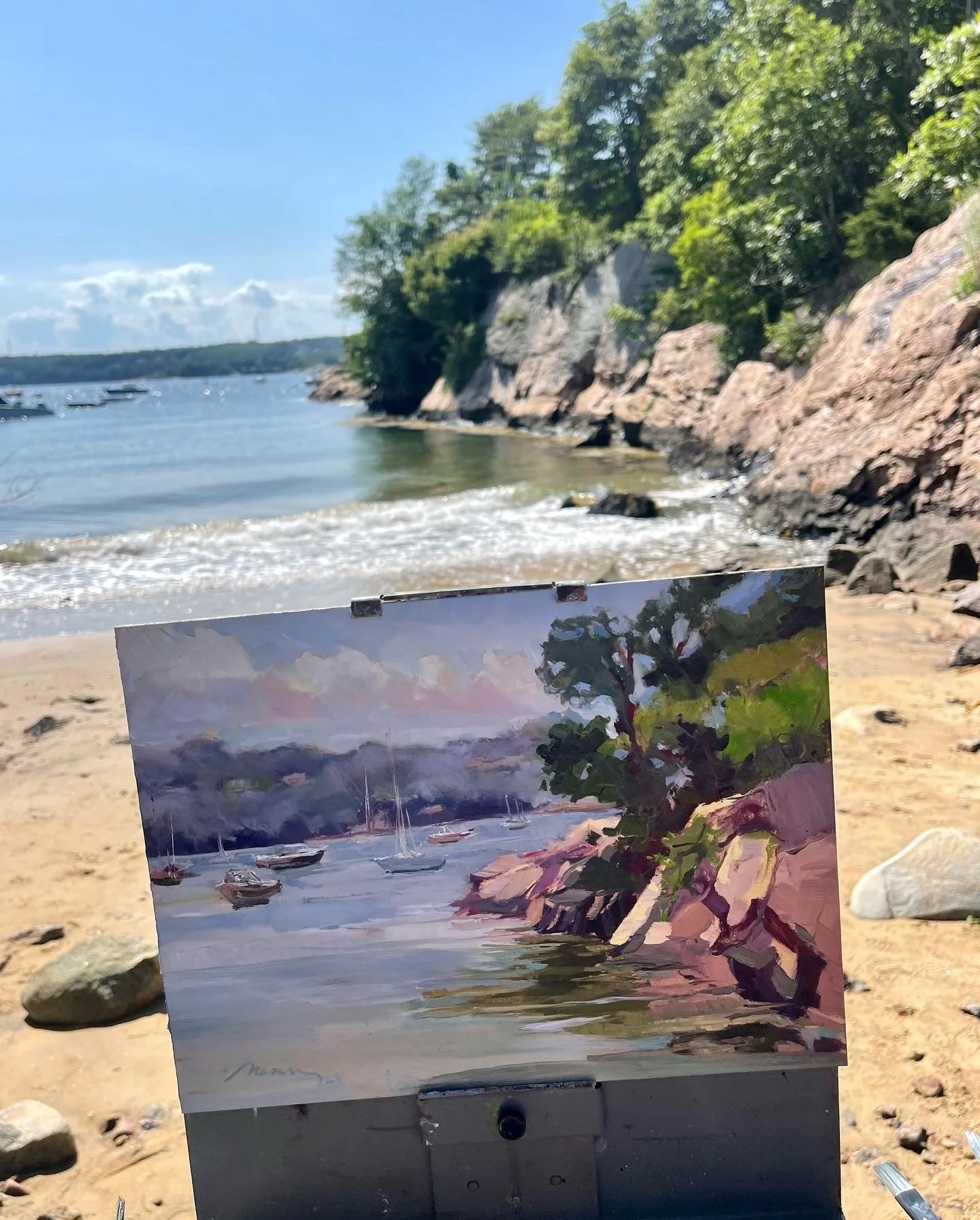 -Rocky Neck Plein Air Painting Afternoon & WET PAINT SALE. What a great event - with music, drinks, beautiful company, and lots of fantastic paintings to exhibit. I couldn't have asked for a better day and location to paint! 🔴 I sold the painting to an art collector 🎨🤍